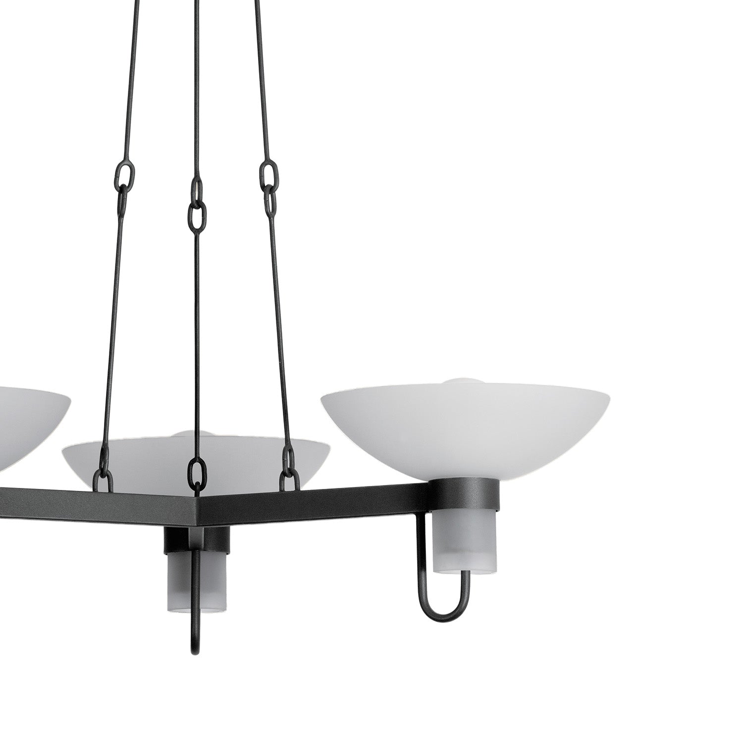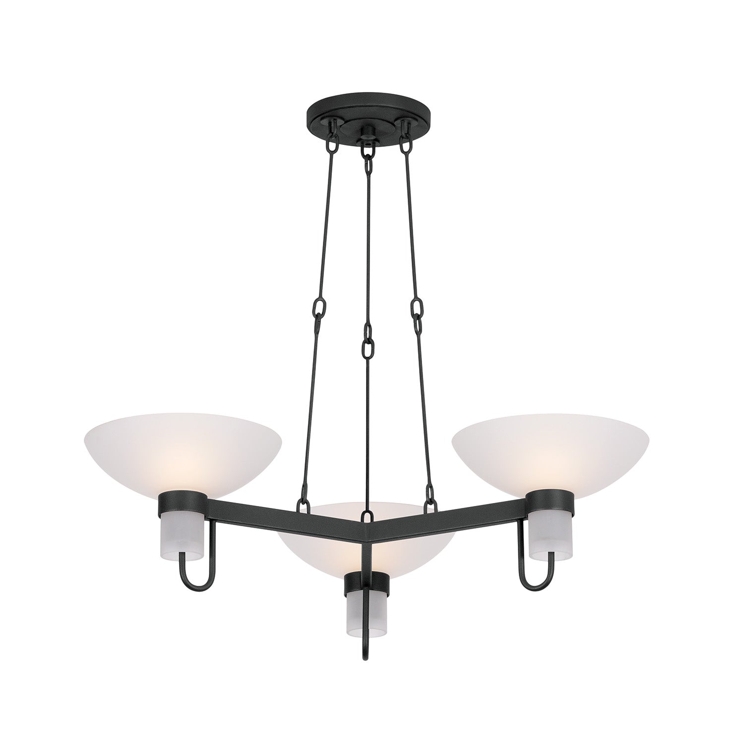 • Modern rustic 3-light chandelier with classic bell-shaped matte glass shades