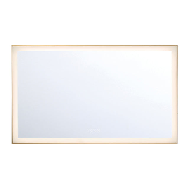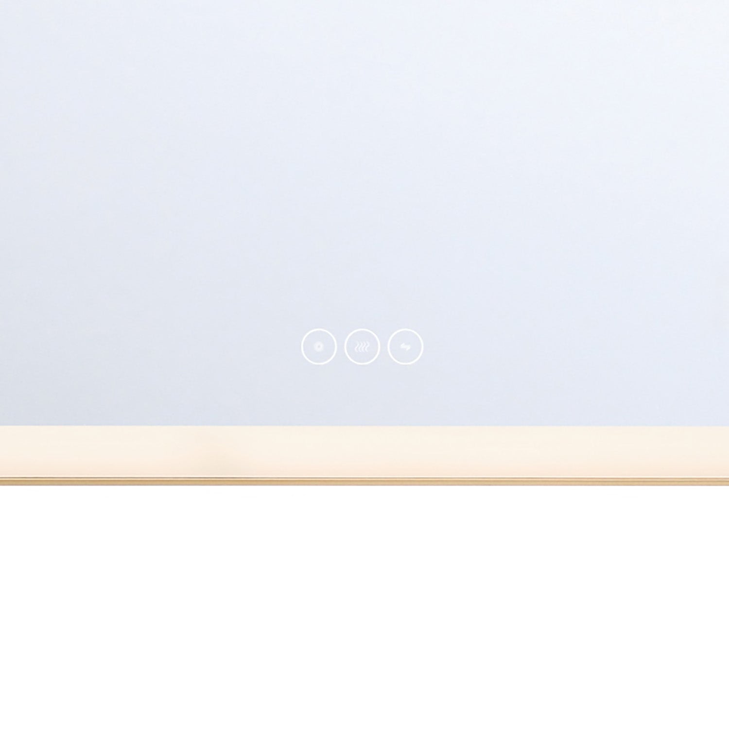 The Demott Extra Large LED Rectangular Mirror makes a refined statement with its sleek silhouette and brilliant, integrated lighting. Its clean, minimalist design radiates a soft, sophisticated halo of light from its perimeter, creating a seamless glow. The mirror offers advanced functionality with a touch-sensor switch for stepless dimming, adjustable color temperature, and a built-in defogger for a crystal-clear reflection. Its versatile design allows for both vertical and horizontal mounting, offering a flexible and elegant solution for any space. ADA compliant and ETL damp-rated, this mirror is a perfect and elegant addition to a bathroom or powder room. The beautiful Brushed Brass finish provides a warm, metallic glow that enhances the mirror's minimalist style, bringing a touch of timeless sophistication to your home.