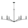 • Farmhouse design with textured black finish featuring six linear arms and candelabra bulbs