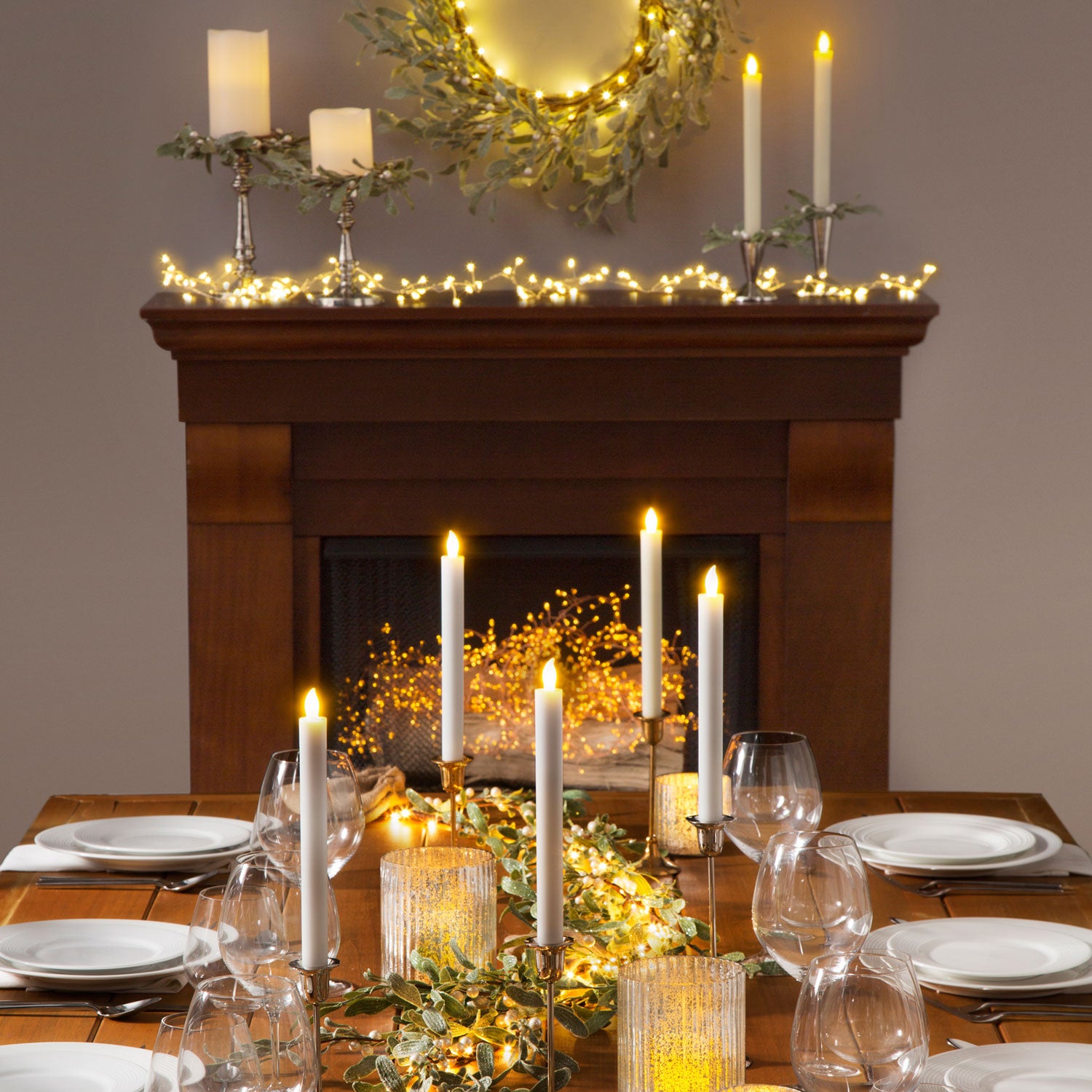This cheerful wintery wreath features leafy branches dotted with white pearly decorative berries. Each delicate leaf shimmers with a touch of glitter, set to sparkle by 75 bright white LED fairy lights wrapped along the inner circle of the wreath. Each wreath boasts an included built-in hook, 4 feet of clear lead wire, and a burlap bag to conceal the battery box - perfect for effortless, instant installation. Place above fireplace mantels or on doors for a perfect, festive addition to your holiday decor.