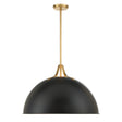 The Grant Pendant features a sleek dome design with a Matte Black exterior and Antique Gold interior finish. This stylish contrast creates a warm glow when illuminated while maintaining a clean, modern silhouette. The extra-large fixture measures 23.5" in diameter and includes multiple rods for a customizable hanging height, making it ideal for large dining tables, grand entryways, or spacious living areas. The industrial-meets-modern aesthetic works well in various interior styles from farmhouse to contemporary. The pendant's three-light configuration provides ample illumination while the metallic interior adds a touch of sophistication and warmth to your space.
