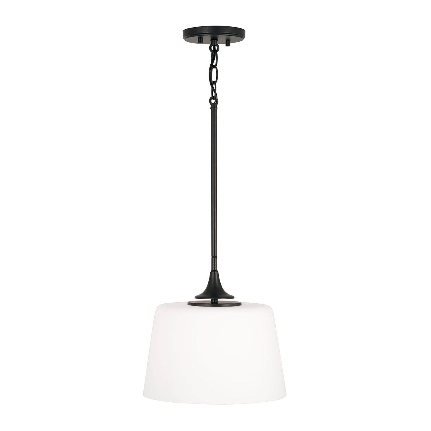 • Contemporary design with a matte black finish featuring an opal glass shade