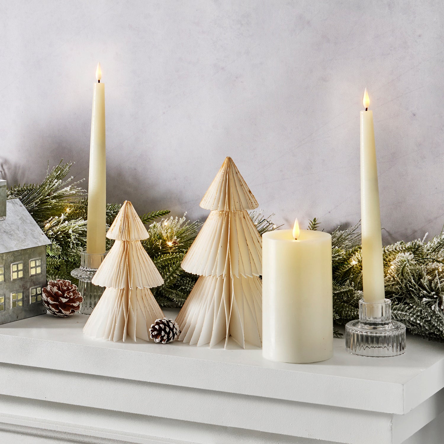 • These candles come in a distressed ivory finish and are perfect for holidays or all year long