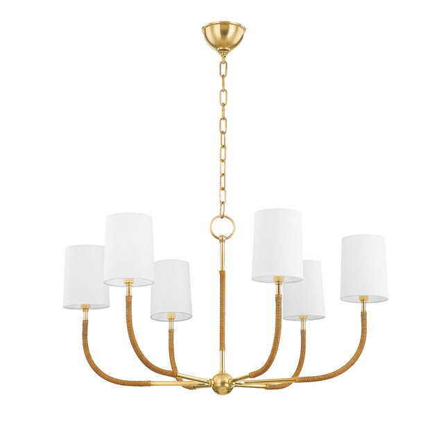 Iris 6 Light Chandelier 34", Aged Brass with Rattan