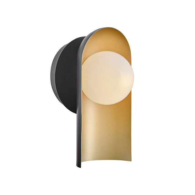 The Kassidy Wall Sconce is a modern artistic light fixture that makes a sophisticated statement with its unique, structural silhouette. The fixture is defined by a bold, curved Black metal shield that cradles a soft Opal Glass globe, creating a striking contrast and providing indirect, ambient illumination. With its ETL damp rating, this bathroom light is an ideal choice for a vanity area, hallway, or bedside. The sophisticated two-toned finish of Black and Satin Brass creates a dynamic, tailored contrast, resulting in a look of enduring style and timeless elegance. This striking contemporary sconce delivers enduring style and a perfect blend of elegance and simplicity.