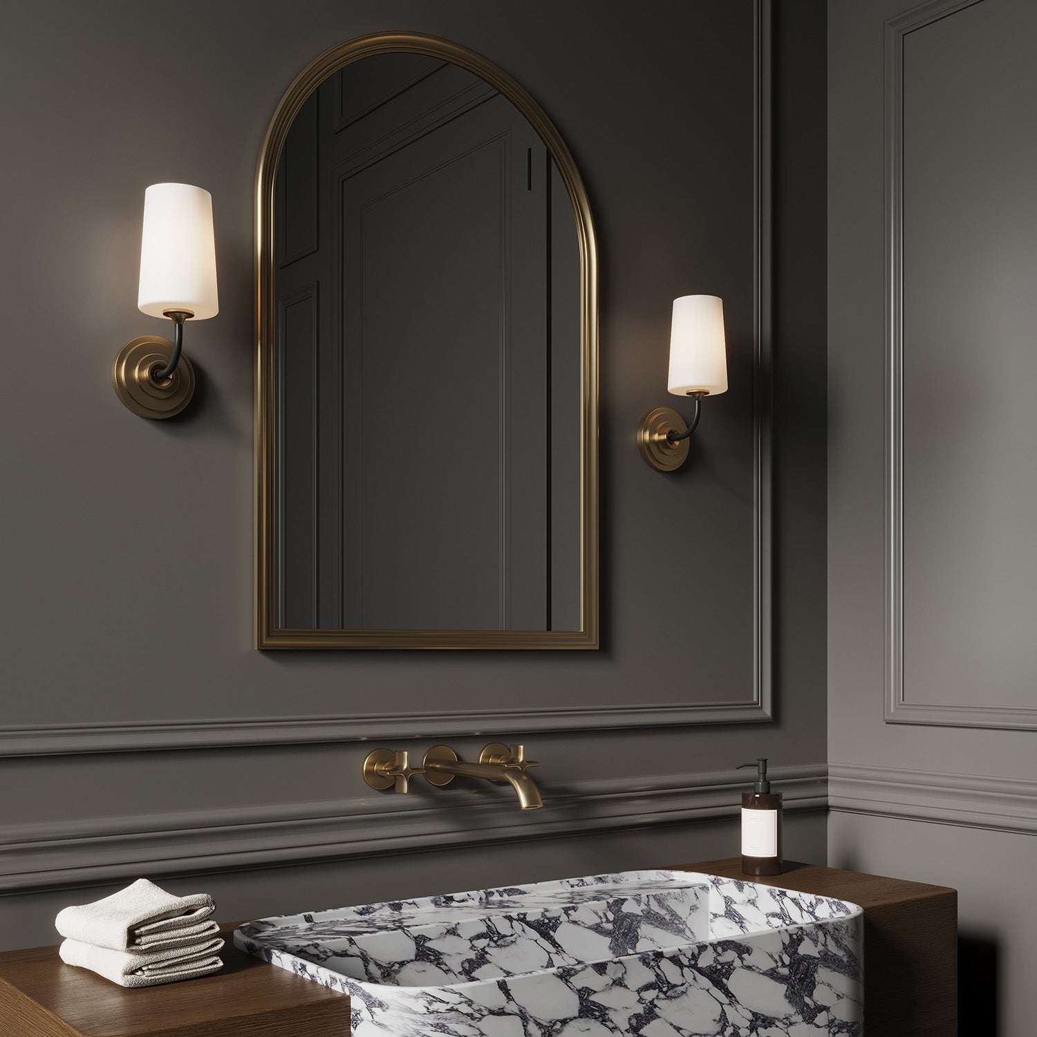 Logan Wall Sconce, Black and Brushed Brass