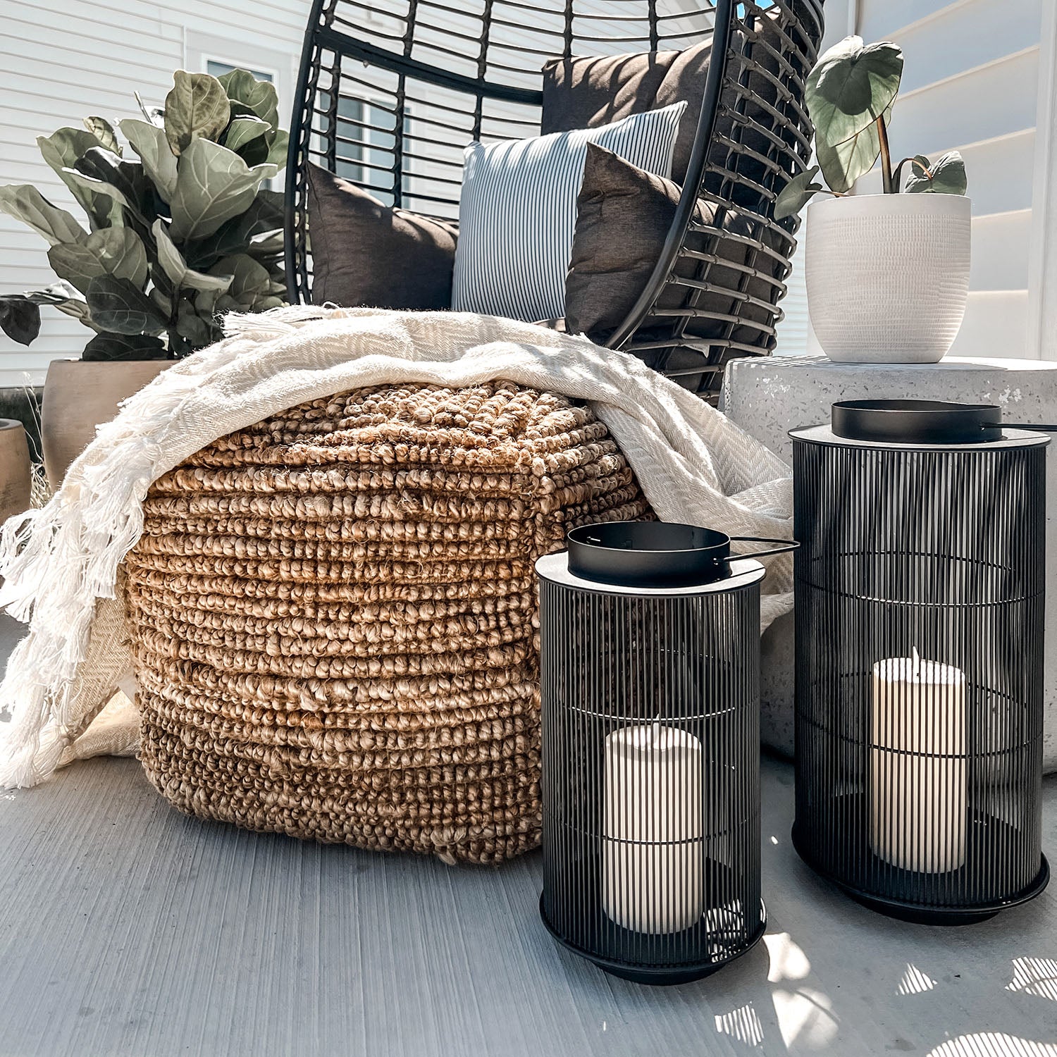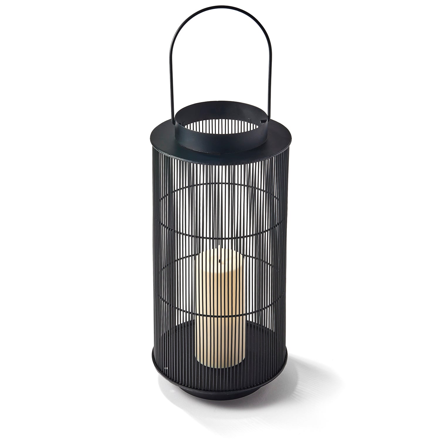 With its unique wicker-inspired black body, this large Mariposa Lantern blends a sense of exotic and practical elements for a striking outdoor light accent. The style intentionally evokes a natural, bamboo look made with much more durable material. The lantern is well-suited for the outdoors; constructed thoughtfully with real metal and paired with our exclusive, remarkably natural Infinity Wick Flame Technology. Activate with the switch at the base and set the included timer setting for effortless ambiance each night after. These outdoor lights add romance and ambiance to your backyard, garden, terrace or personality into your front steps or deck. Perfect for home, weddings, churches, restaurants, and events.