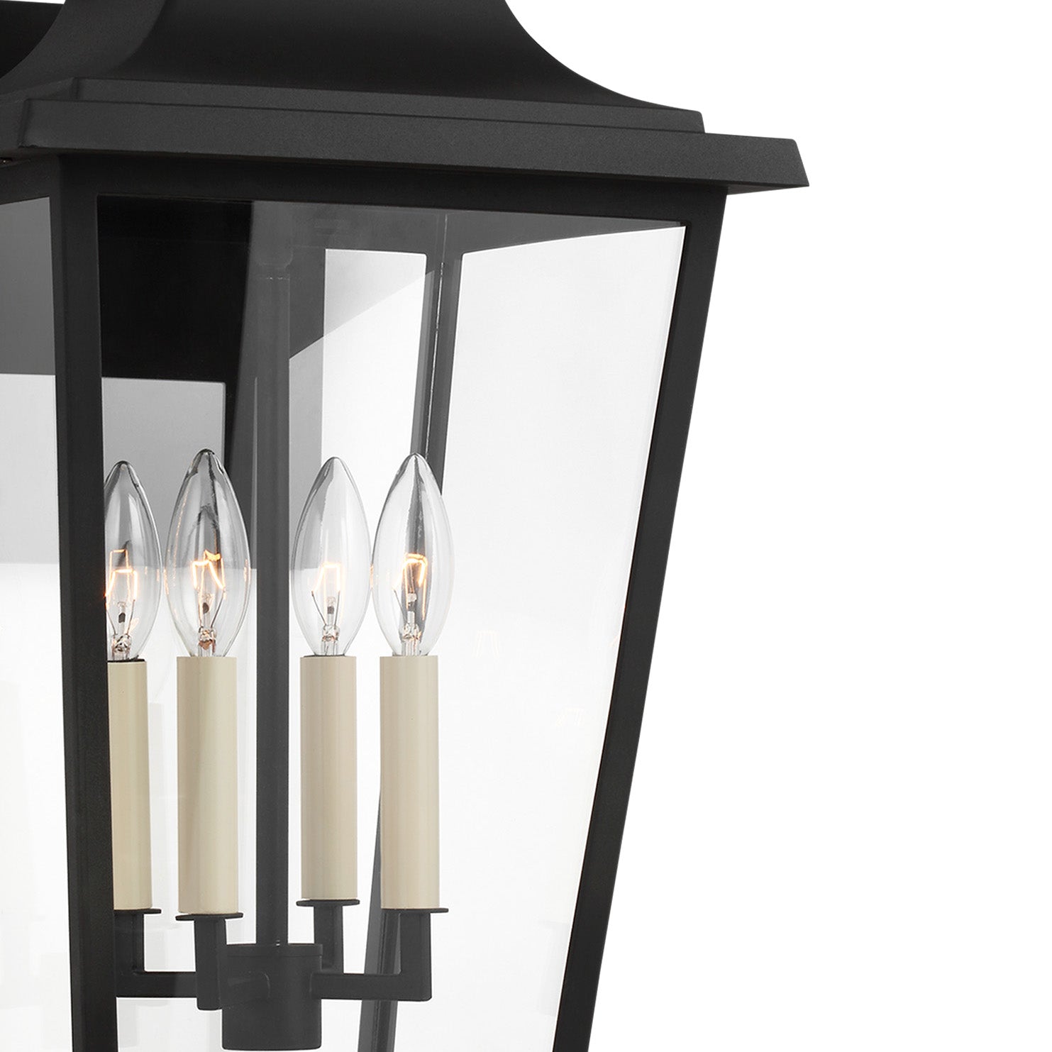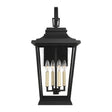 The Pembroke Large Outdoor Wall Light makes a charming statement with its classic lantern aesthetic and traditional design elements. This durable fixture is built to withstand the elements while enhancing the beauty of your property. Its clear glass panels beautifully showcase four exposed candelabra bulbs, providing bright, welcoming illumination that increases the safety and security of your home. With its ETL wet rating, this light is a perfect solution for any outdoor space. The rich Textured Black finish offers a subtle mix of traditional design elements, creating a versatile and enduring look that brings both functional beauty and curb appeal to your home.
