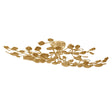 The Phaedra Semi-Flush 30" is a modern artisanal light fixture that makes a sophisticated impression with its unique, botanical design. The fixture features a multitude of intricately formed metal leaves, creating a sweeping, organic silhouette that diffuses a warm, ambient glow. This flush mount light fixture is thoughtfully designed for low ceilings, providing expansive, multi-directional illumination that is ideal for a hallway, bedroom, or living area. With its UL damp rating, it offers both visual interest and practical functionality. The rich gold leaf finish enhances the fixture's opulent silhouette, delivering enduring style and a perfect blend of elegance and simplicity.