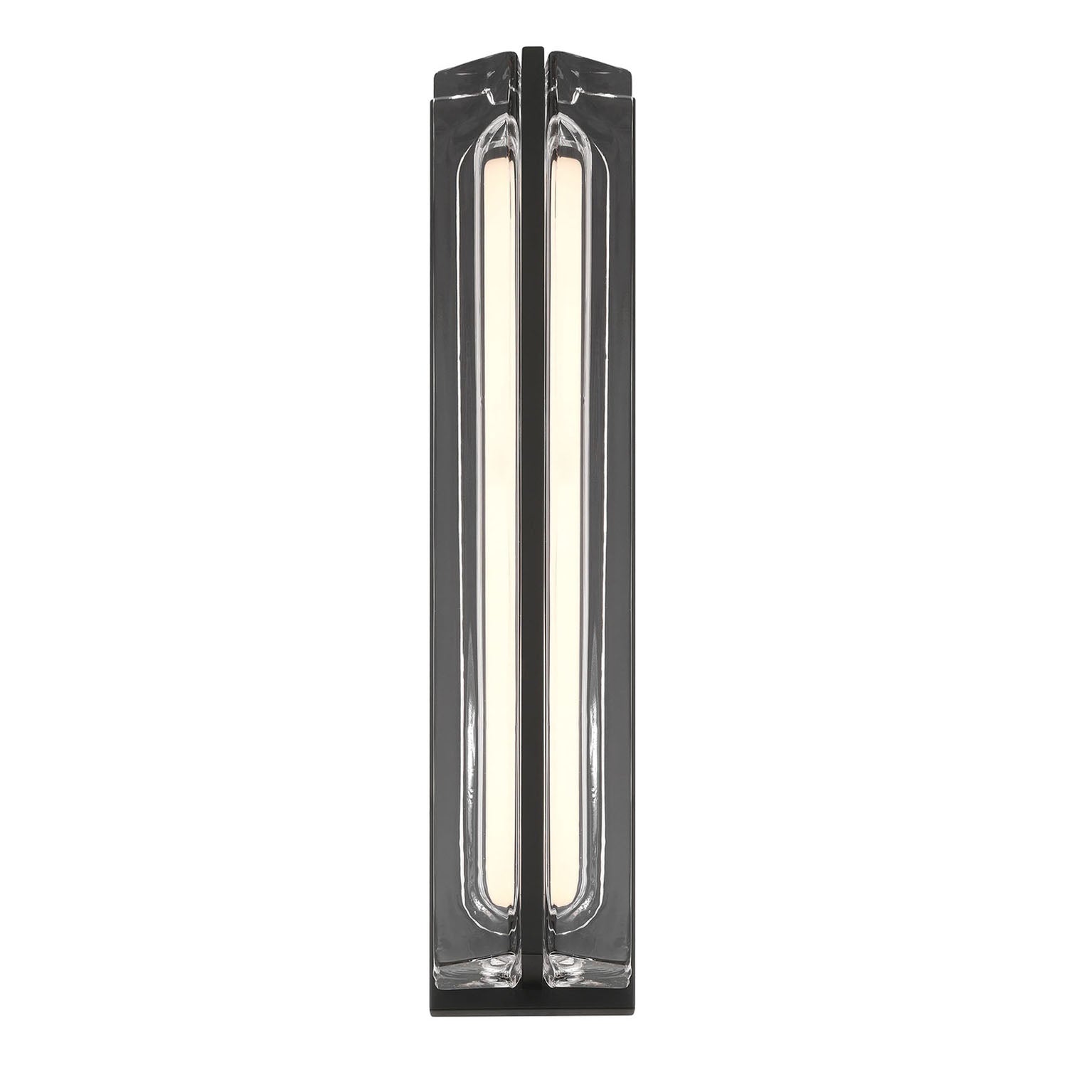 The Prescott LED Outdoor Wall Light brings architectural elegance to any exterior space with its modern glass block design and bold matte black finish. This sophisticated fixture features a beautifully crafted clear glass block panel with faceted edges and metal trim, creating gentle, diffused illumination that transforms entryways, patios, and exterior walls into welcoming showcases. The structured design delivers modern sophistication while the clear glass allows light to filter beautifully throughout outdoor spaces. The matte black framework and glass elements combine to provide contemporary luxury with a timeless appeal. At 24" in height with its distinctive rectangular form and ADA-compliant design, this outdoor sconce makes a refined statement that brings architectural character to any exterior.