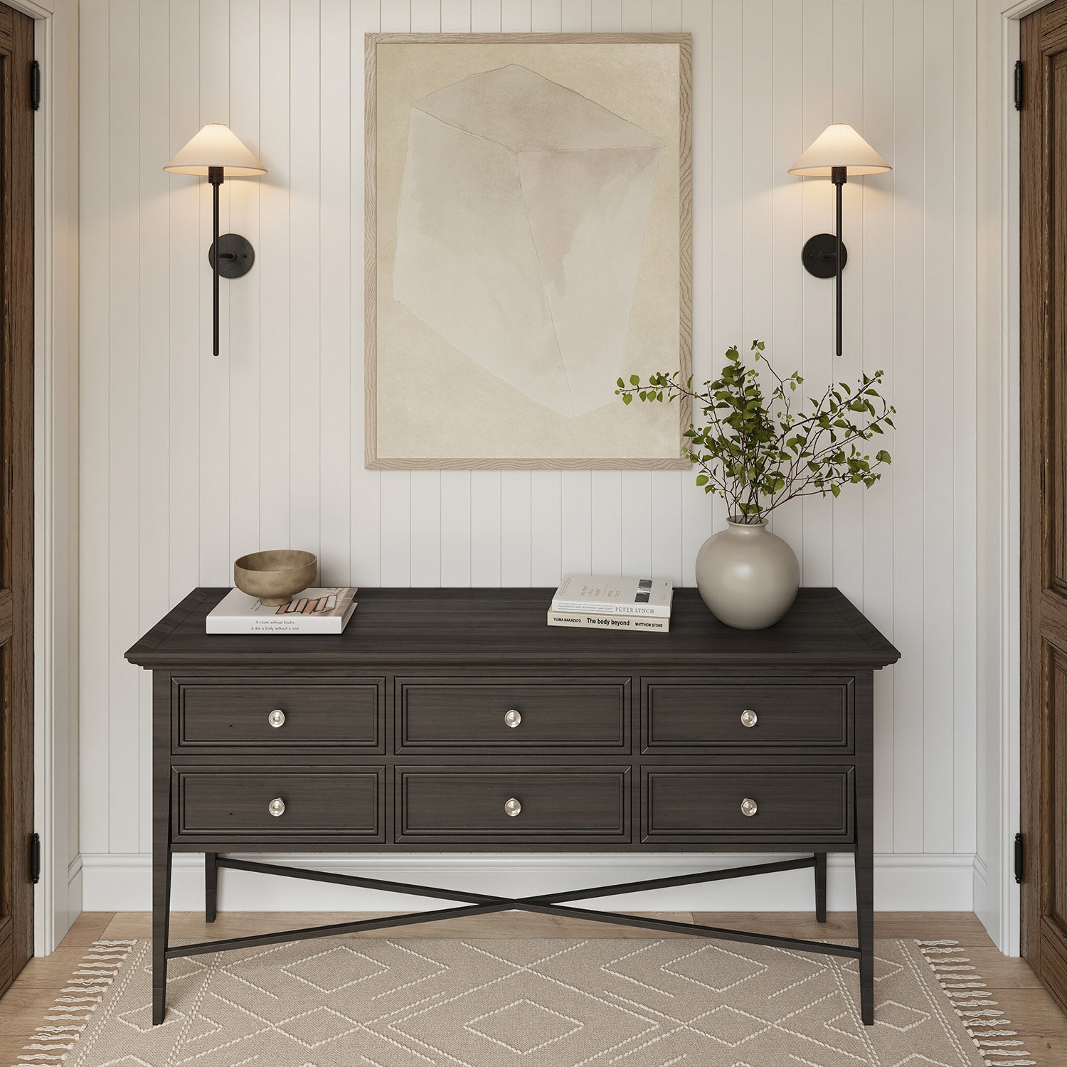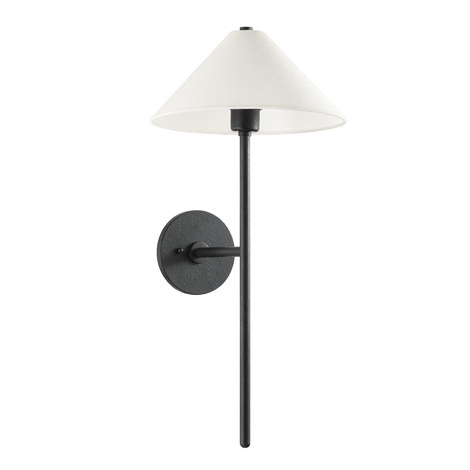The Scarlett Wall Sconce 26" features a sleek forged iron arm that draws the eye to a single tapered natural linen shade, creating clean, modern sophistication on any wall. The wall sconce's minimalist design and graceful proportions add a touch of softness and contemporary appeal to the overall aesthetic. Perfect for hallways, bedrooms, or flanking mirrors and artwork, this single-light wall sconce provides focused ambient illumination while serving as an elegant design element. The Scarlett wall sconce brings contemporary style and artistic appeal to modern and transitional interiors with its distinctive tapered shade and refined metalwork.