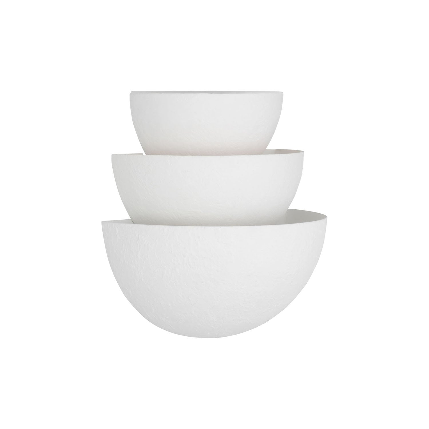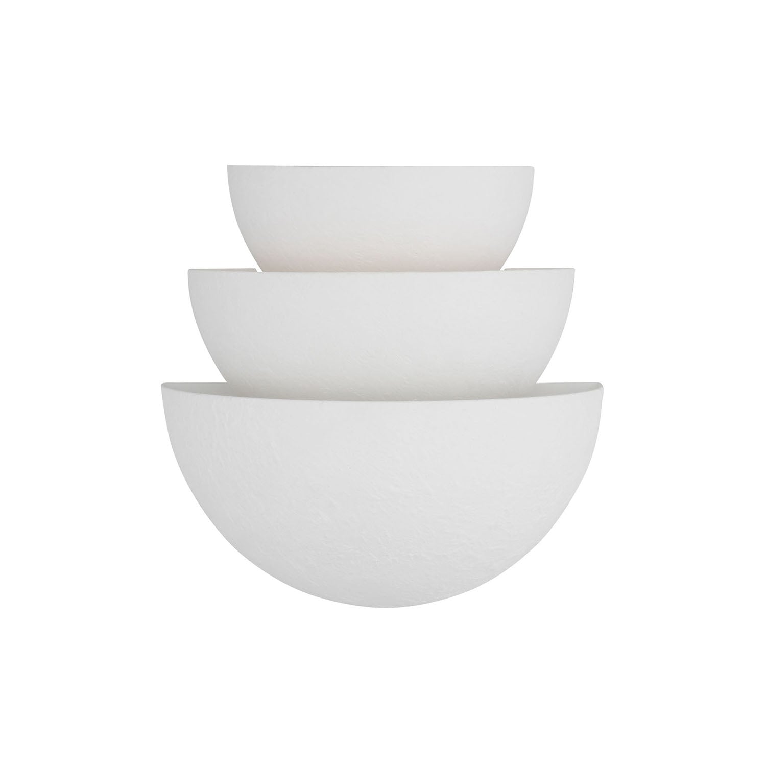 The Verity Wall Sconce showcases beautiful cast plaster construction, making it a versatile piece that can be used anywhere in your home. This elegant 8" wall sconce features three tiers of round, bowl-like shades that draw inspiration from everything from art deco through to Italian midcentury design, perfect for hallways, bedrooms, bathrooms, and spaces seeking refined lighting with handcrafted appeal. The cast plaster finish gives the shade a beautiful hand-crafted look with subtle texture variations that create visual interest and timeless elegance. This single-light design provides soft illumination while the damp-rated construction ensures reliable performance in various environments. With its dimmable capabilities and compact profile, this sconce transforms any space with distinctive style and performance.