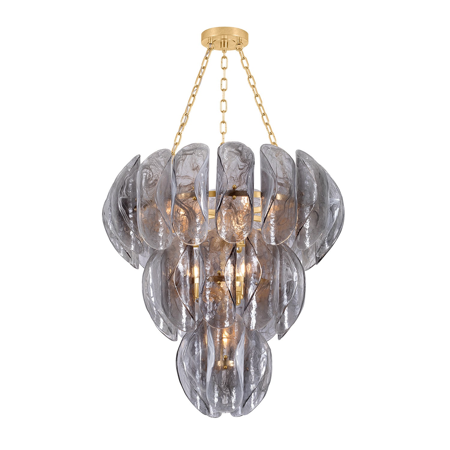 Vivian Chandelier 33", Gold Leaf and Smoke Glass