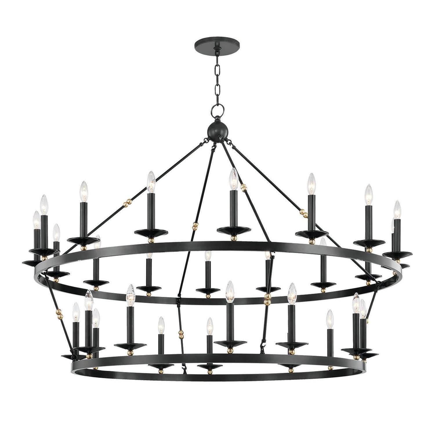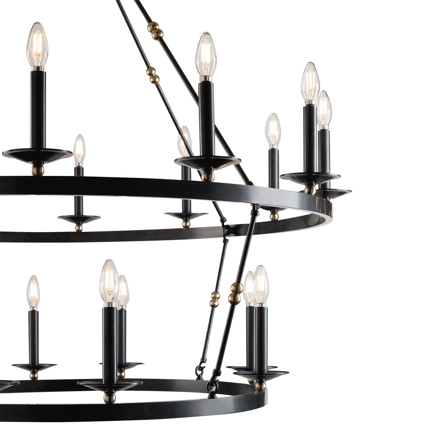• Classic two-tier chandelier with sweeping metal rings