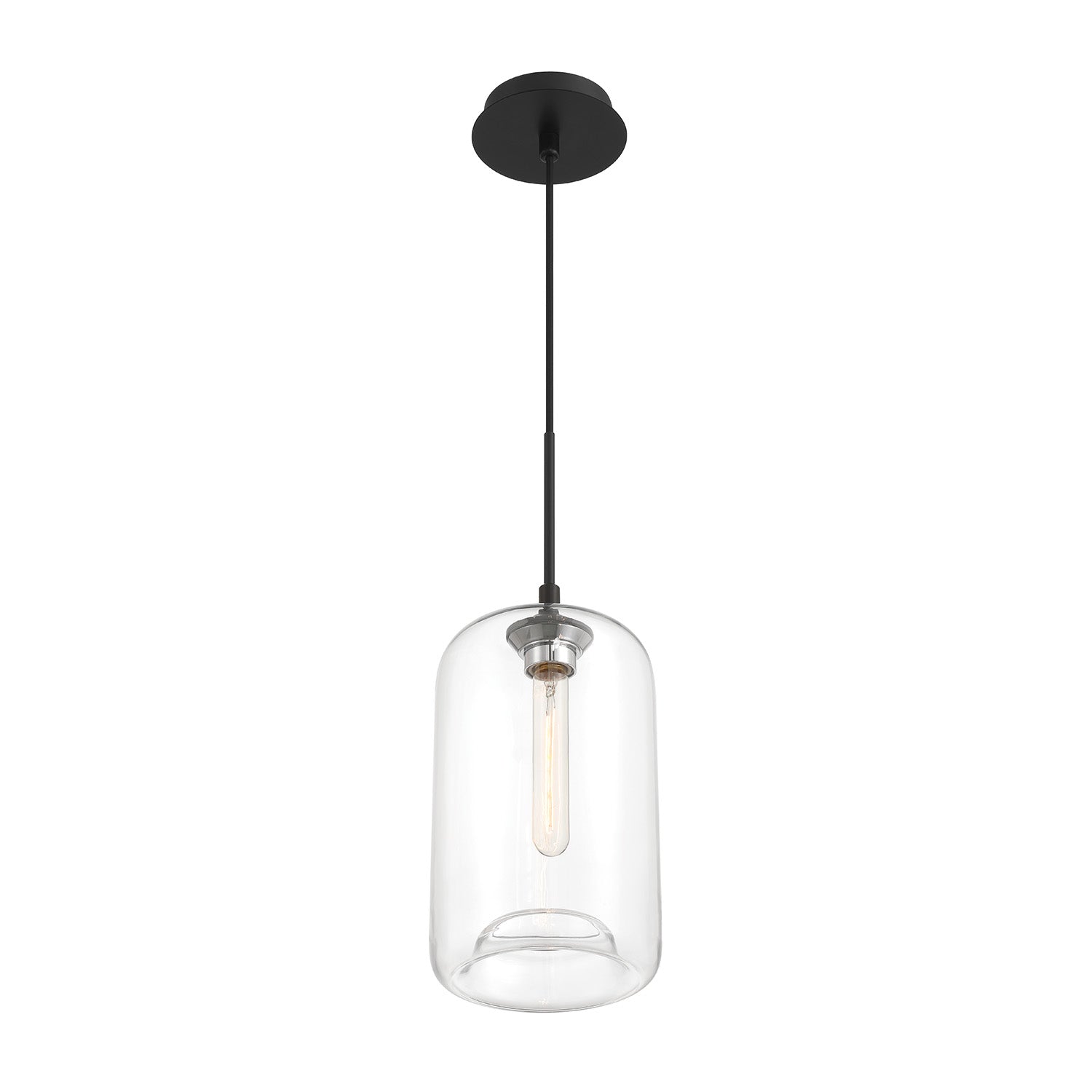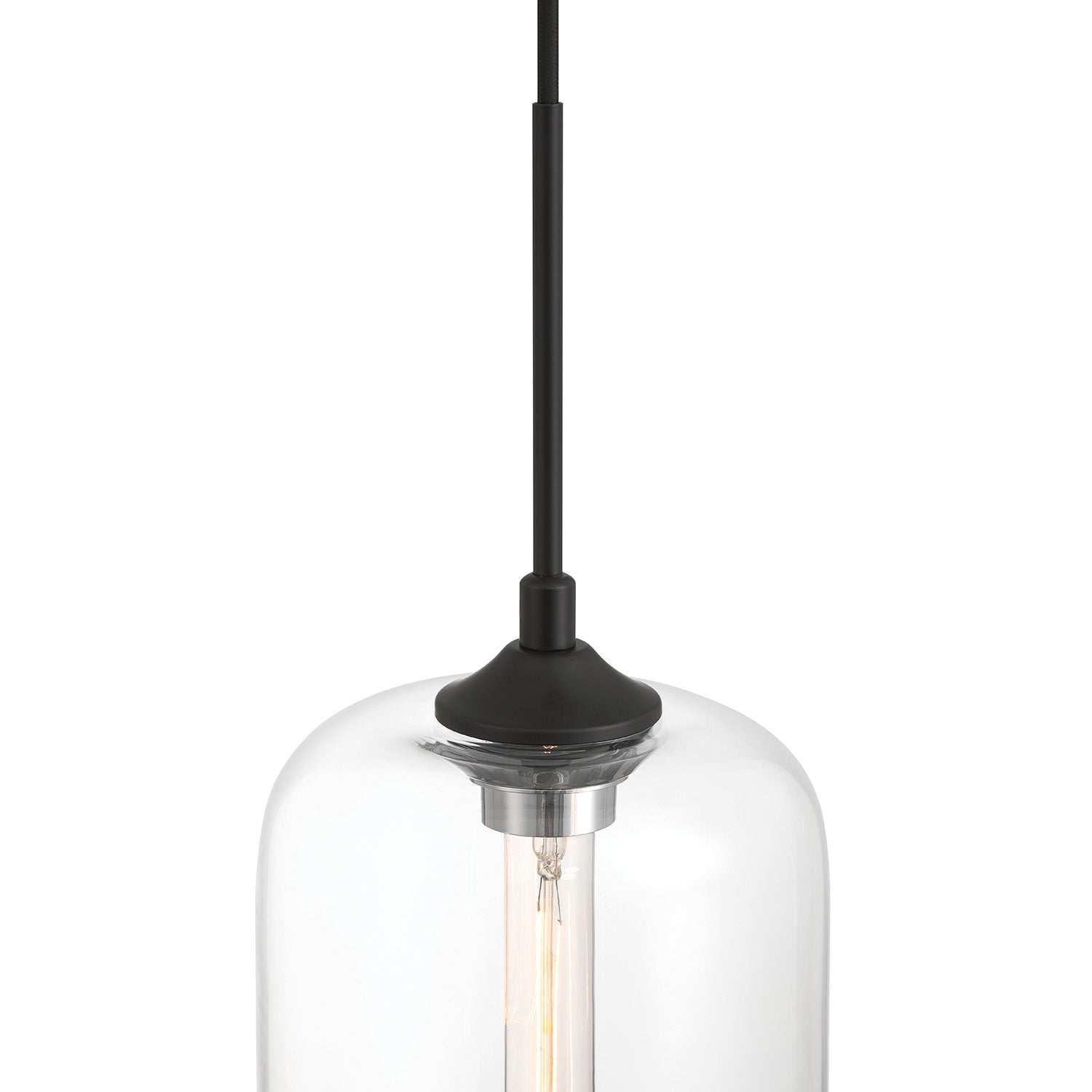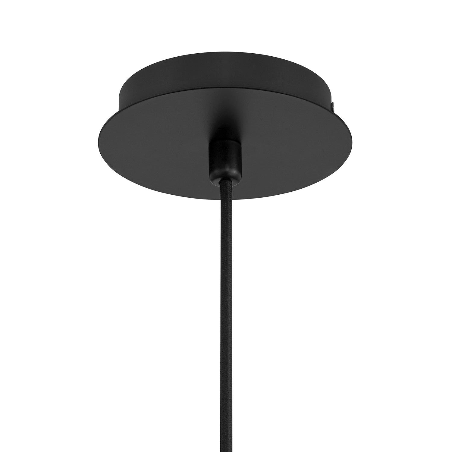 • Suspended by 10 feet of our signature vintage-style, black braided cloth cord and a round matte black metal canopy