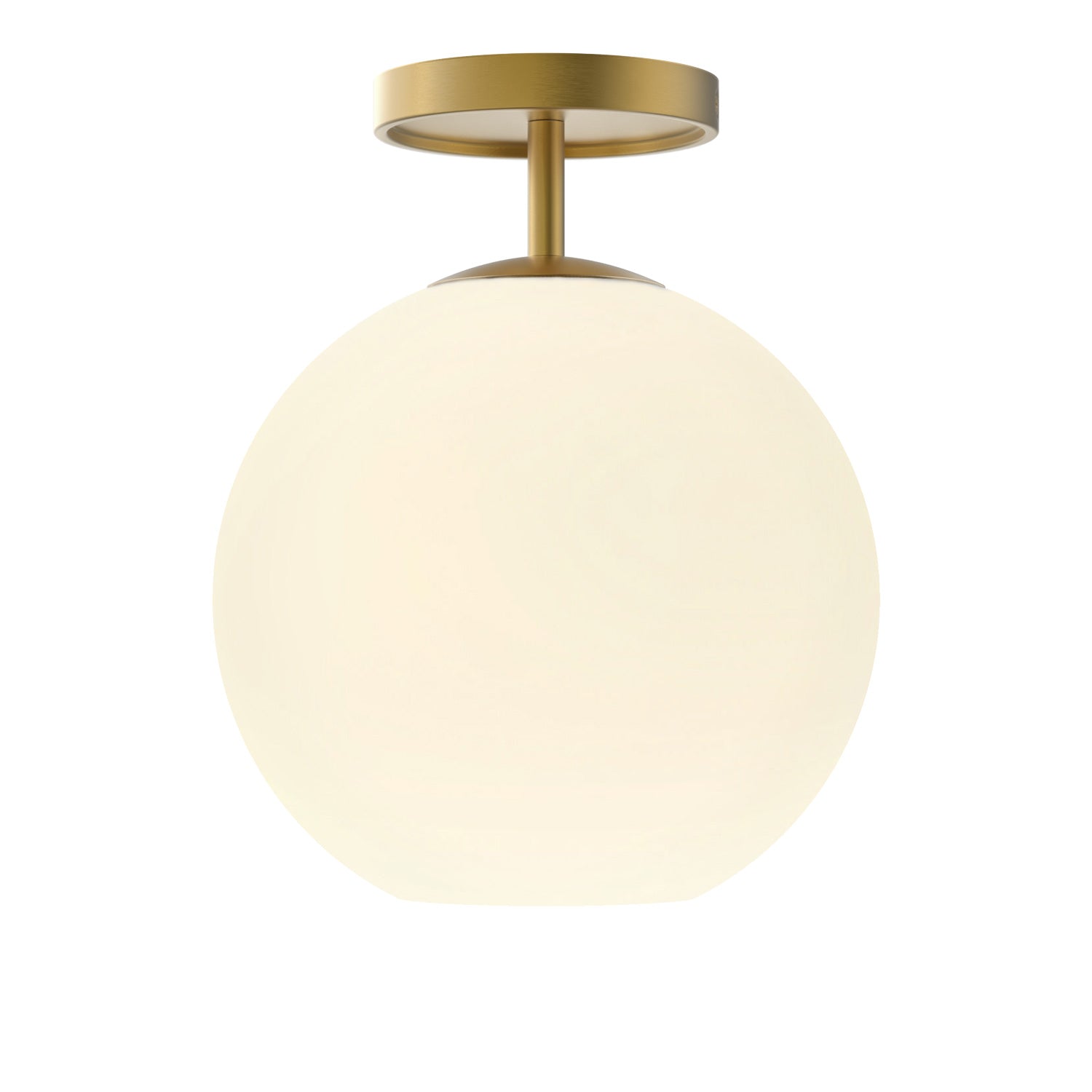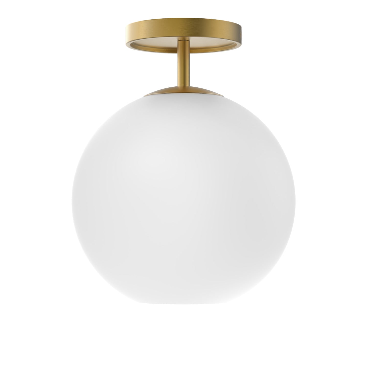The Aria 10" Opal Globe Flush Mount Light is a beautiful, modern interpretation of a classic, simple ceiling light. Features a frosted, opal glass globe shade encasing the seamless metal socket, and suspended inches from a circular canopy- all in a warm, satin brass finish. This updated fixture pairs superior materials with exceptional style, for a look that is both timeless and chic. Ideal in hallways with standard or tall ceilings, entryways, or as the main source of light in bathrooms and bedrooms.